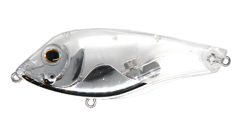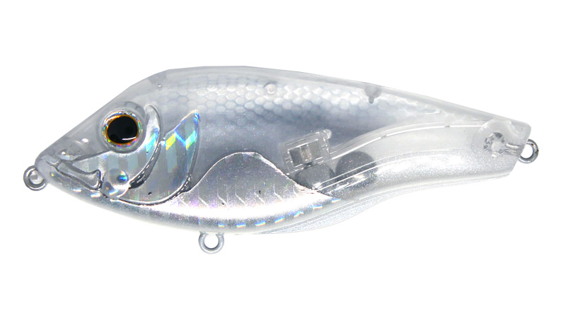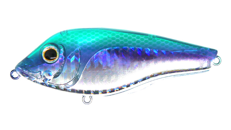 そこに立体ホロを用いクリアながらにアピールのあるブルーと内臓のギラつきを表現しました。もちろんミジュンナブラの際は普通に使っていただければ一定の釣果となります。