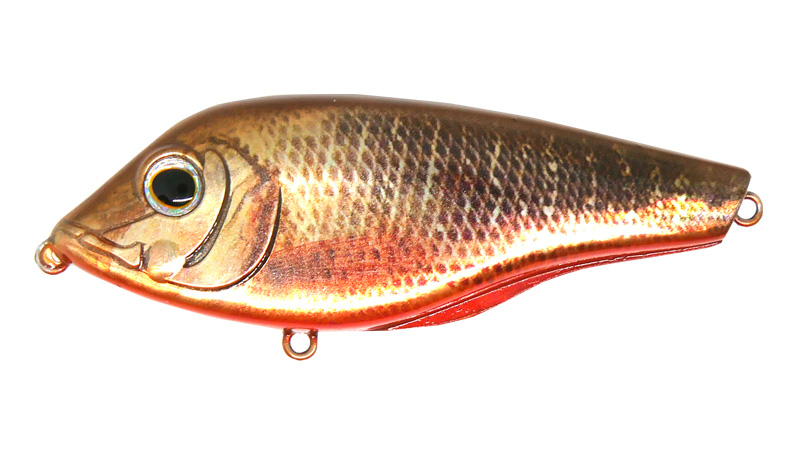 沖縄のメインベイトとされているテラピア。テラピアにはいくつか種類があり、モザンピークかナイルテラピアというものが主流ですが、このカラーは海/川での小型テラピアの代表格であるナイルテラピアを模しました。特殊なプリント加工をしています。
